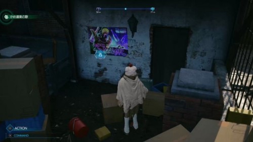Направляйтесь в указанную область, и вы встретите кошку, держащую флаер. Когда вы подойдите к ней, она побежит в большой район позади нее. Здесь будет много кошек с плакатами, но та, которая вам нужна, находится далеко позади, за бочками.