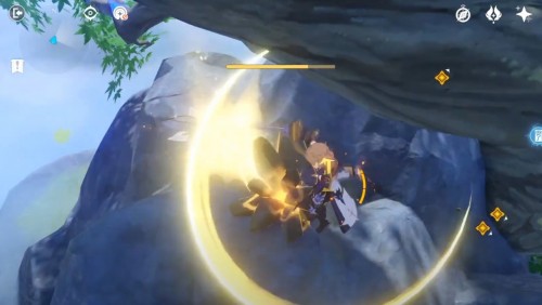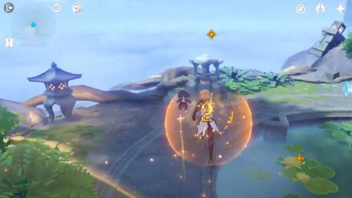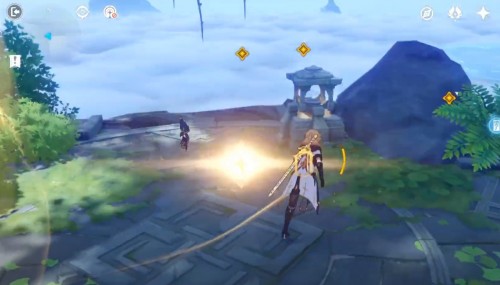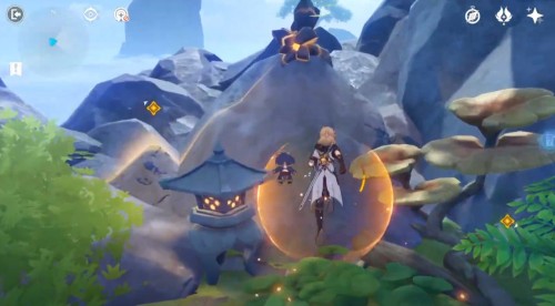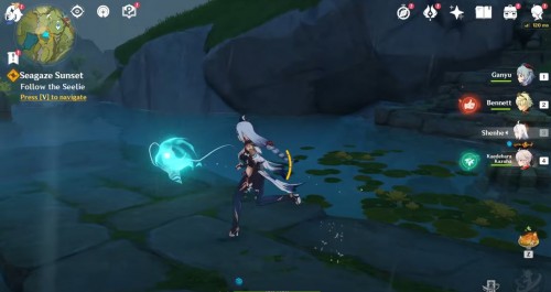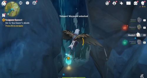 Фея остановится возле водопада в ущелье. Подойдите к ней для открытия прохода в подземелье под названием «Обитель Созерцателя Морей». Вам нужно будет полностью пройти его. Рекомендуется иметь в отряде Гидро, Гео и Пиро персонажей.