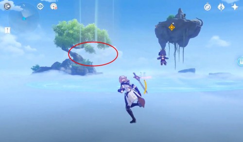 Для попадания к третьему Гео фонарю, находящемуся на парящем острове, вам нужно будет воспользоваться воздушным потоком, расположенным возле одинокого дерева. Если не получается сходу воспользоваться им, то спрыгните на него с ближайшего уступа. Затем просто активируйте лампу после разрушения минерала.
