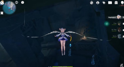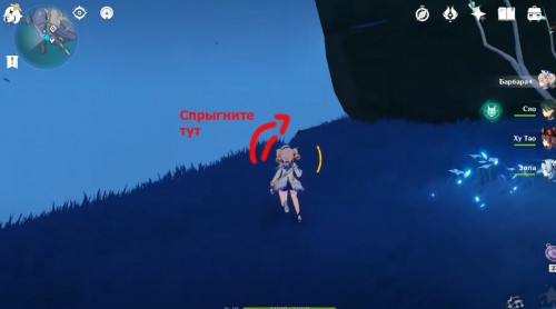 После выполнения миссии «Подземные испытания драконов и змея» телепортируйтесь в Дайнити Микоси и спланируйте с обрыва в юго-восточной части локации (смотрите скриншоты ниже). Держитесь скалы справа, и вы увидите нишу с двумя призраками. Вам нужно будет поболтать с одним из них.