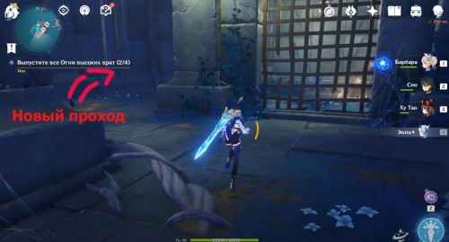 В итоге откроется новый проход. Пройдите через него, чтобы обойти решетку и коснуться последнего Огня.