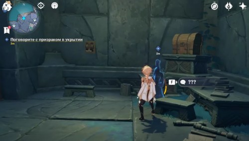 Призрак не будет помнить, кто он. Вам нужно будет помочь ему узнать эту информацию. Выйдите из каменной постройки и взаимодействуйте с древней каменной табличкой неподалеку. После этого вернитесь к привидению и расскажите ему о том, что вы узнали.