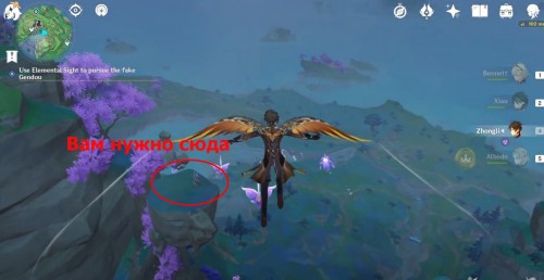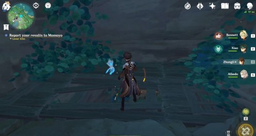 Разобравшись с ней, узнайте, что замыслили Фатуи. Получив нужную информацию, возвратитесь к Момое, чтобы доложить ей обо всем. Она все так же находится в убежище к северо-западу от храма Наруками.
