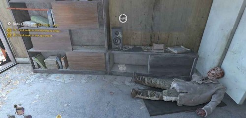 Здесь можно отыскать девять книг. Восемь из них вы можете подобрать как обычно, осматривая помещения, а для получения девятой придется выполнить дополнительные действия. Пять книжек лежат в правой части комнаты, а еще три – в левой.