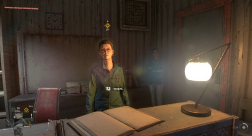 Войдите внутрь и взаимодействуйте с дверью. Далее будет разговор, в котором у вас появится новый выбор: