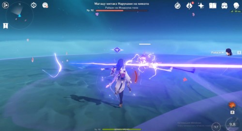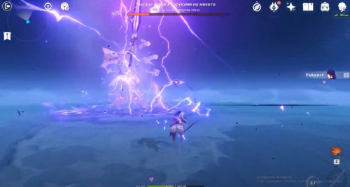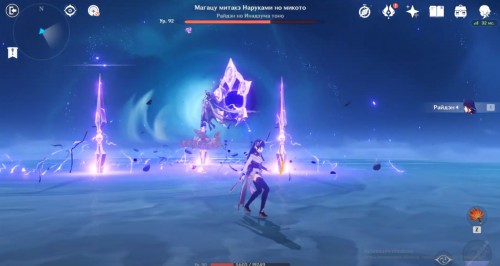 В определенный момент вам нужно будет уничтожить ока грома Магацу (фиолетовые сферы), которые появятся на арене (показана на картинке). Если вы не успеете сделать это, то они сами взорвутся, нанеся Электро урон. Пока эти шары находятся на арене, нанести урон боссу не получится.