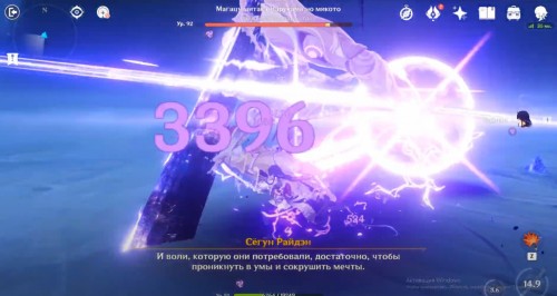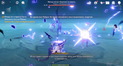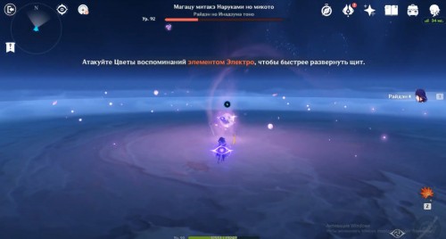 Вскоре противник исчезнет, а на арене появятся Цветы воспоминаний (фиолетовый шар). Как можно быстрее уничтожьте их Электро атаками для создания щита, защищающего от удара марионетки. Далее продолжайте бить босса. Если видите, что враг поднял меч и начал накапливать энергию, то постарайтесь забежать ему за спину или сделайте рывок в сторону, чтобы не попасть под огромный клинок.