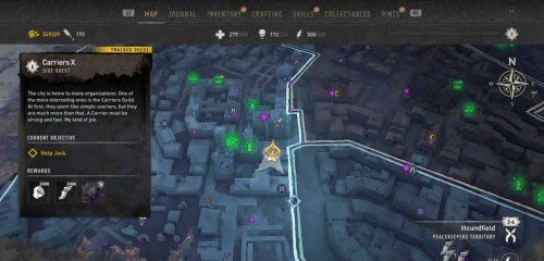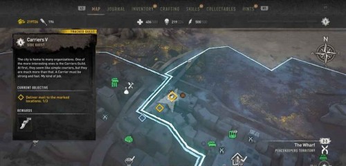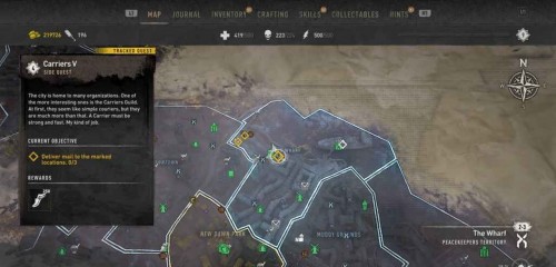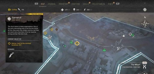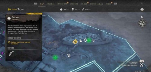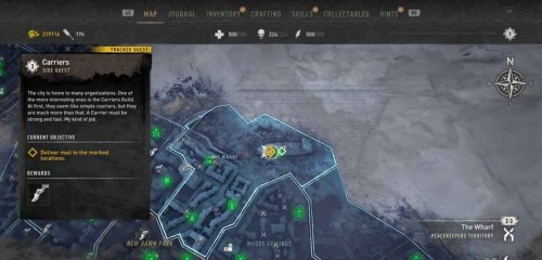 Вам нужно будет осуществить 3 доставки, но все получатели находятся в Уорфе. Двигайтесь к первой точке прямо к востоку от станции метро «Уотерсайд».