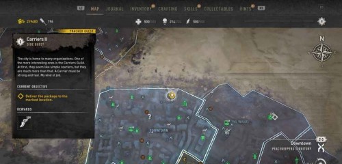 Двигайтесь в указанную локацию на северо-востоке от Даунтауна и передайте посылку.