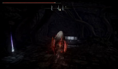 Идите дальше и спрыгните в первое отверстие, которое вам попадется. Двигайтесь вперед, постепенно спускаясь. Как только дойдете до конца трубы, воспользуйтесь лесенкой, чтобы спуститься. Сверните вправо и используйте подъемник, дабы попасть на нижний этаж. Тут вы обнаружите место благодати. Продолжайте двигаться прямо, и вы попадете на арену с боссом Мог, Знамение. Разберитесь с ним, а потом стукните по алтарю (второй скриншот ниже) – он опустится, открыв секретный путь.
