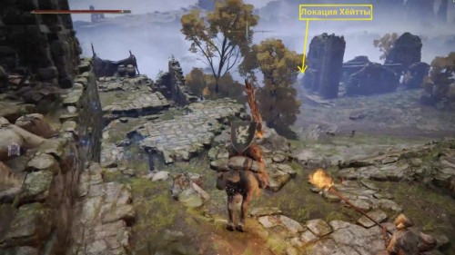 Спустившись, поверните сразу же вправо и бегите по лестнице вниз. Затем спрыгните на нижний уровень через проемы слева. Тут же развернитесь, и вы увидите впереди труп. Осмотрите останки, чтобы забрать виноград Шабрири. Возвратитесь к Хейтте и передайте ей данный предмет. В награду вы получите жест «Как пожелаешь».