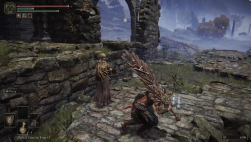 Эта миловидная девушка появится в игровом мире лишь после того, как вы завершите сюжетную линию Ирины и Эдгара, которые находятся на Плачущем полуострове. Сделав это, направляйтесь к месту благодати Скалы со стороны озера, находящемуся севернее Замка Грозовой Завесы. Там вы обнаружите барышню с повязкой на глазах.