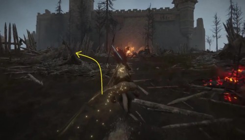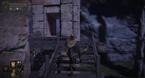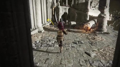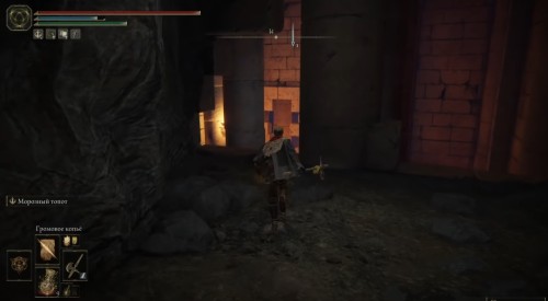 От данного «костра» пройдите вниз через открытый проход на севере. Потом сверните влево и спрыгните на нижний уровень. Пройдите еще ниже по ступенькам слева и войдите через окна с левой стороны (смотрите второй скриншот ниже).