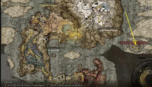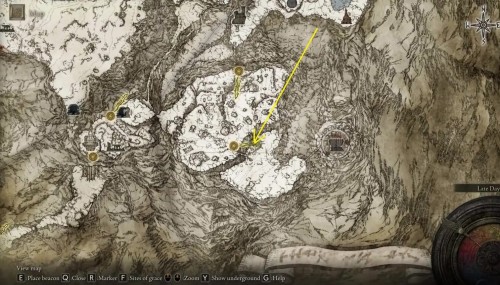 Вы сможете обнаружить его на восточной стороне места благодати «Подножие кузницы», расположенного на юго-востоке Вершин Великанов (смотрите на карту ниже).
