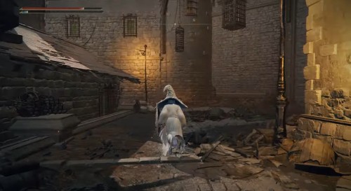Снова переместитесь в Храм города-тюрьмы. Выйдите через дверь, а потом сразу же сверните вправо и спускайтесь по дорожке вниз, идя возле зданий. Потом вам необходимо повернуть влево и пройти по ступенькам еще ниже.