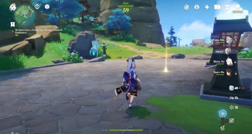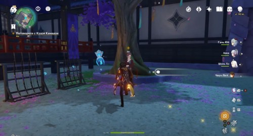 Начав задание, отправляйтесь в город Инадзума в отмеченную на карте область. Как только придете в нужное место, посмотрите небольшой ролик с Синнодзе и Иппэем. Узнав последние новости о свадьбе, направляйтесь в имение Камисато, чтобы встретиться с Аякой.