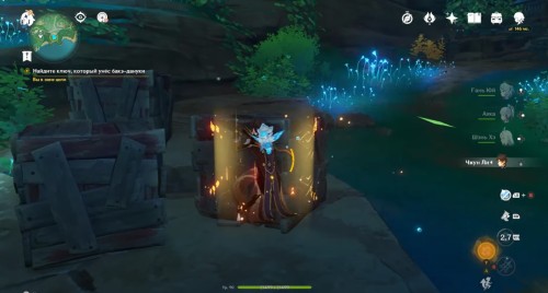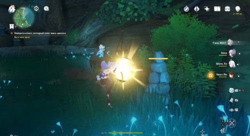 В ней вы найдете группу стражников, которые не захотят отпускать заключенного. Вам придется сразиться с ними. В этом бою вы сможете использовать Аято, даже если он отсутствует в вашем отряде. Это не очень сильные противники, поэтому вы должны без проблем разобраться с ними, особенно если у вас в команде имеется Крио герой.