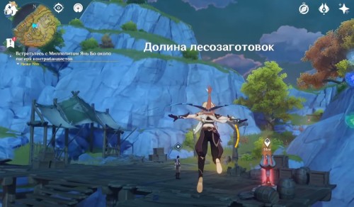 На карте возникнет новая отмеченная зона, указывающая на расположение главного вражеского аванпоста. Он находится на возвышенности. Доберитесь до него и вступите в схватку с имеющимися здесь врагами: Крио магом Цицинов, Пиро агентом Фатуи и Сокрушителем.