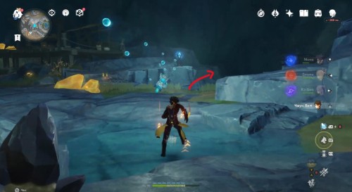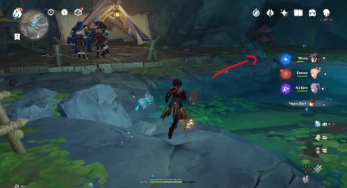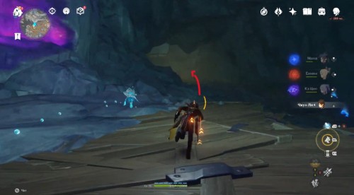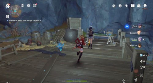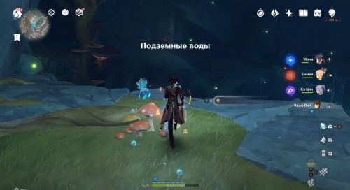 После перемещения к телепорту, развернитесь и пройдите в отверстие впереди. Войдя внутрь, пробегите немного вперед, а потом сверните вправо. Идите мимо лагеря фатуи, дойдите до обрыва и спрыгните вниз. В результате вы окажитесь в Подземных водах.
