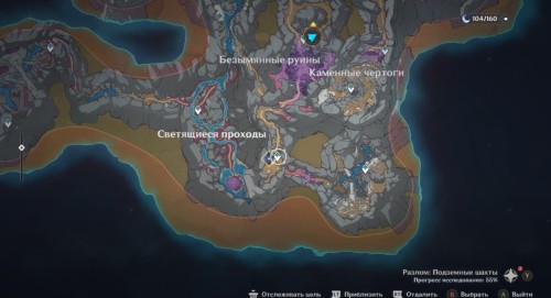 Первым делом следует пройти квестовую линейку «Записи о путешествии вглубь Разлома», чтобы открыть основную часть карты подземных шахт. Далее вам необходимо будет попасть в локацию Подземные воды. Добраться дотуда можно с южного телепорта Основной зоны добычи. Весь маршрут показан на карте ниже.