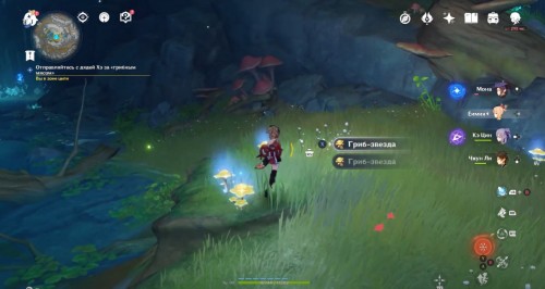 Направляйтесь в отмеченную область и начните собирать грибы-звезды (они будут подсвечены, поэтому вы запросто отыщите их). Как только вы сорвете все грибочки, на вас нападут плесенники.