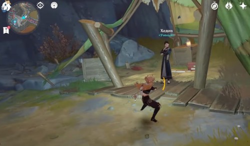 Переместитесь к юго-восточному телепорту Временной главной штольни, а затем сразу же спрыгните вниз к водоему. Оставьте вещицу в отмеченном месте. Далее возьмите любого Гидро персонажа и атакуйте предмет Гидро умениями.