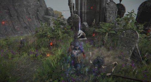 Для этого доберитесь до Руин поселения, расположенных в восточной части Замогилья. Пройдите мимо живых цветов в полуразрушенное здание. Там вы обнаружите вход в подвал. Спустившись вниз, разберитесь с мини-боссом Тыквоголовым безумцем. Разобравшись с ним, активируйте место благодати «Разрушенный подвал поселения».