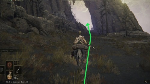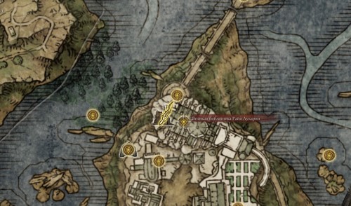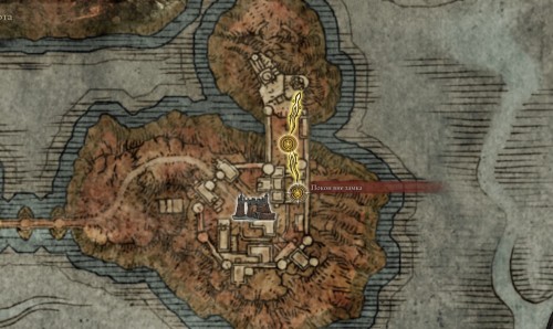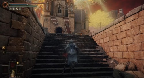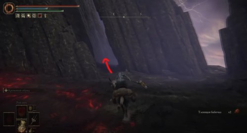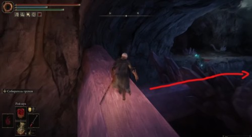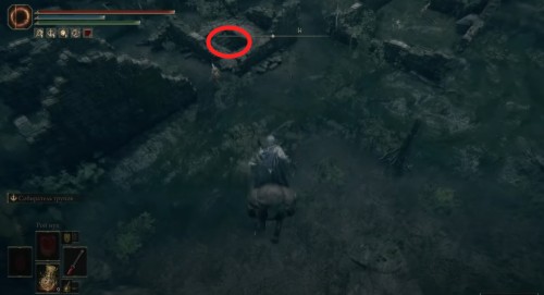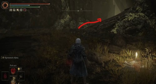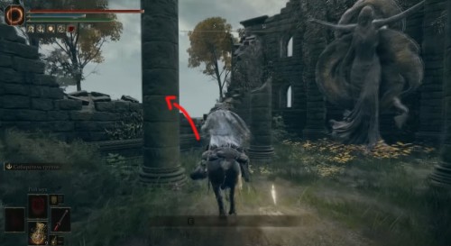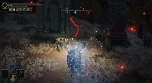 Прослушав все диалоги и получив осколок звездосвета, телепортируйтесь к «Четвертому храму Марики», расположенному в северо-западной части Плачущего полуострова. Затем бегите направо, перепрыгнув через полуразрушенную стену.