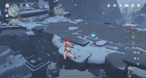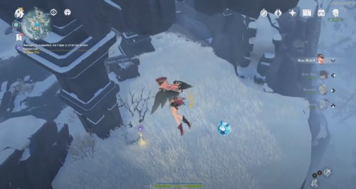Вам необходимо будет возвратиться на Драконий хребет. Переместитесь к статуе семи Архонтов в этой заснеженной области, а затем сразу же спрыгните с каменной площадки вниз и спланируйте к белому огоньку. Взаимодействуйте с ним, чтобы взять ящик со свежими цветами.