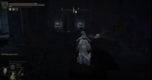 Теперь спрыгните вниз и двигайте прямо, чтобы дойти до места благодати «Нокрон, Вечный город». Пройдите через открытую дверь, и вы окажитесь на площади с беседкой, а потом идите через ворота справа.