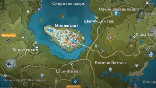 На третий день (если повезет) снова бегите на площадь и пообщайтесь с пареньком. Он отметит, что Анне стало еще лучше, но требуется закрепить результат, отыскав следующий ингредиент. Переместитесь к статуе семи архонтов в озере Звездопадов, а затем двигайтесь на юго-восток.