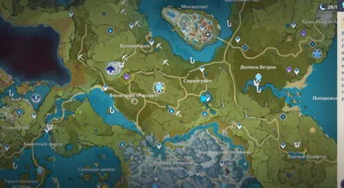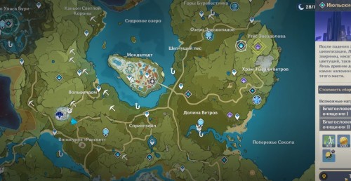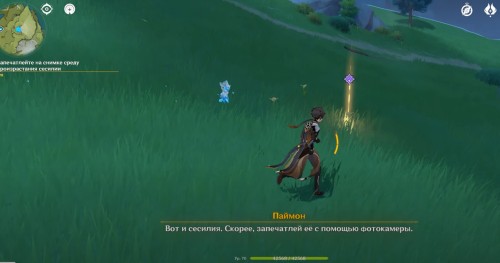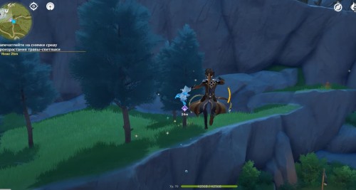 Телепортируйтесь к статуе семи архонтов на западе и продолжайте двигаться в западном направлении, в Вольфендом. Возле деревьев на выступе вы обнаружите нужные вам растения. Встаньте возле них, возьмите камеру и сделайте фото, правильно выбрав угол съемки. Теперь сорвите эти 3 травы-светяшки.