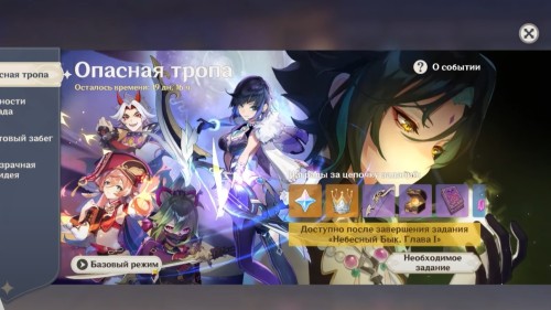 После завершения указанных миссий откройте меню событий, найдите «Опасную тропу», а затем нажмите на кнопку «Базовый режим». Далее кликните «Подтвердить». В верхней части ивентовой картинки появится надпись «Необходимое задание». Нужно нажать на него, чтобы наконец-то взяться за выполнение первого квеста новой сюжетной цепочки.
