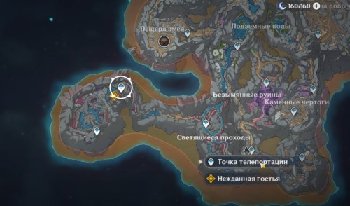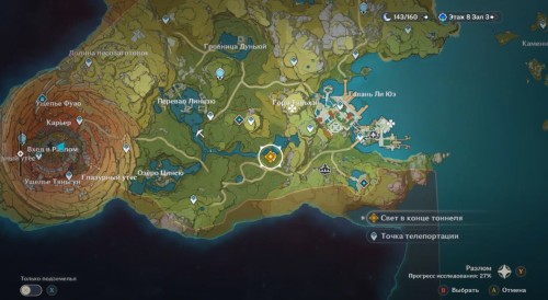Если вы по какой-либо причине ушли из Разлома после завершения предыдущей части, то вы можете запросто возвратиться туда. Откройте карту подземных шахт и выберите телепорт, показанный на картинке ниже. Затем спуститесь вниз под светящийся камень и взаимодействуйте с дырой.