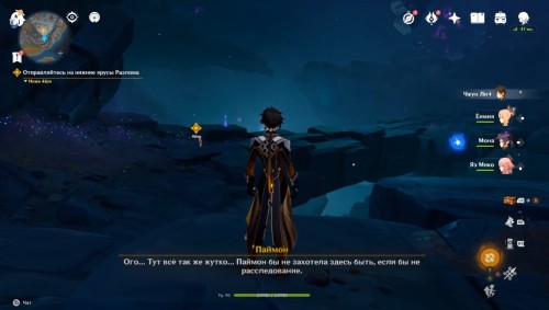 Возвратитесь назад в лагерь, расположенный на Дне Разлома, если вы покинули данную локацию (выше мы рассказали, как это сделать). Затем начнется продолжительный ролик, в котором вы побеседуете с Паймон, Куки Синобу и другими персонажами.