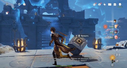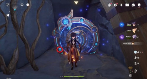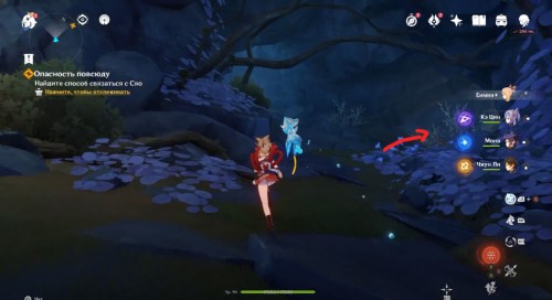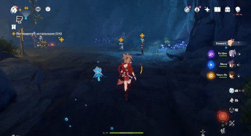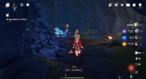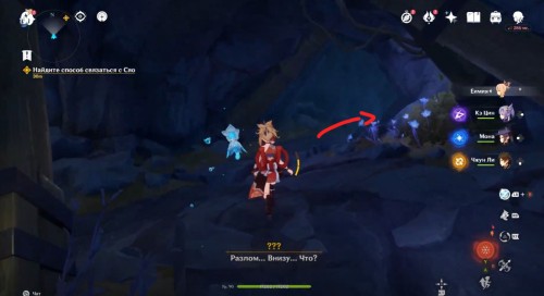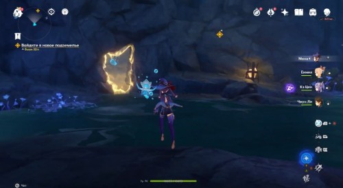 После падения вниз и разговора со спутниками идите вперед и пообщайтесь с Е Лань, обнаружившую вход в неизвестное подземелье. Здесь вы также повстречаете Сяо, который откажется от присоединения к нашей группе. Лучница при этом предложит исследовать таинственную область.