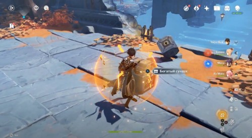 После взаимодействия с разблокированным кубом вы сможете пройти еще выше на следующий остров. Тут вам нужно будет победить двух геовишапов. Уничтожив их, вы получите драгоценный сундук и откроете портал. Взаимодействуйте с последним, чтобы покинуть данж. Далее посмотрите новую продолжительную кат-сцену.
