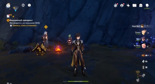 Возвратитесь в лагерь и пообщайтесь со своими спутниками: Е Лань, Итто и Куки Синобу. Они будут отмечены маркерами. Во время беседы можете выбирать любые варианты диалога, так как они не влияют на развитие квеста.