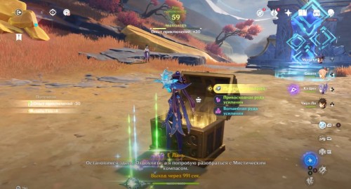 Посмотрев ролик с Янь Фэй и лучницей, снова пообщайтесь с каждым их своих спутников (Сяо, Итто, Синобу и Е Лань). Все они будут отмечены маркерами. На этом задание завершится, и вы получите вознаграждение: 1125 очков приключений, 49 200 моры, 5 опыта героя и 9 волшебной руды усиления.