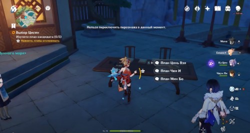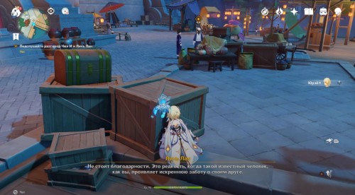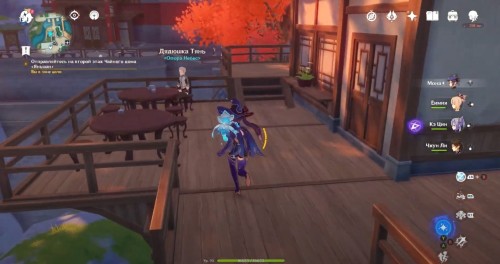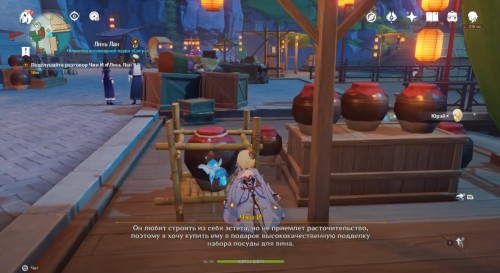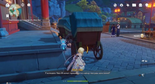 Прокрутите время на следующее утро (08:00) с помощью меню Паймон, а затем направляйтесь в чайный домик. Посмотрите продолжительный ролик с дядюшкой Тянем и Е Лань.