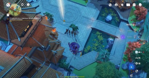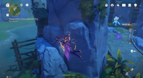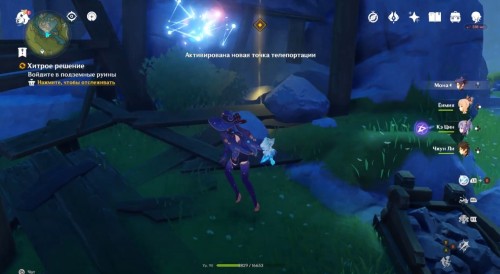 Затем приземлитесь в точке, на которую указала Е Лань. На карте будет отмечена лишь область, поэтому спланируйте в место, показанное на скриншоте ниже. Поболтайте с Е Лань. После этого возникнет вход в новое подземелье. Войдите в него.