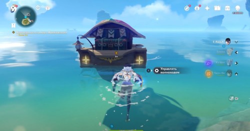 После просмотра ролика заберитесь на борт волнохода (нажмите возле него клавишу «F»), получившего название «Фрикаделька». После этого начните плыть к желтому указателю на восток. Управление этим кораблем ничем не отличается от плавания на стандартной лодке. По пути можете, кстати, выполнить парочку испытаний.