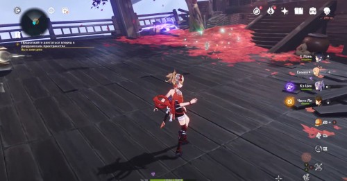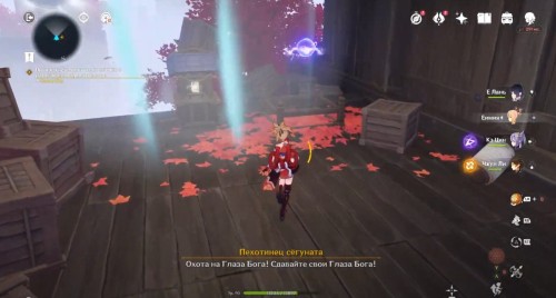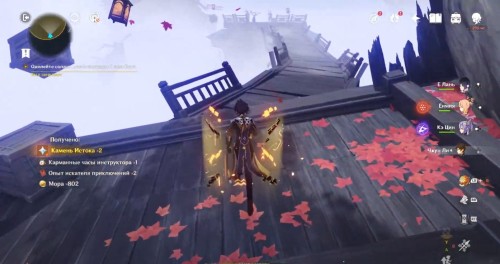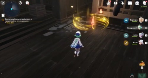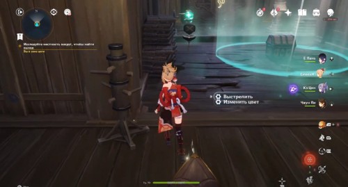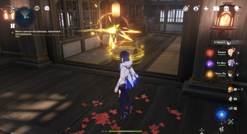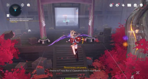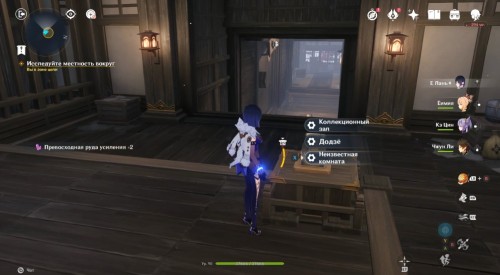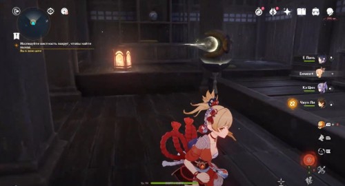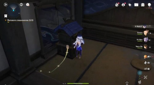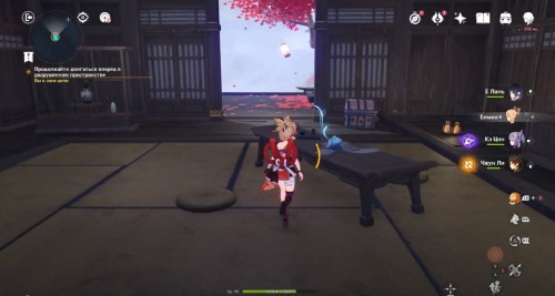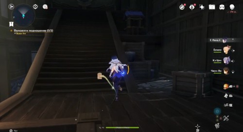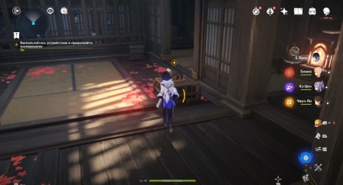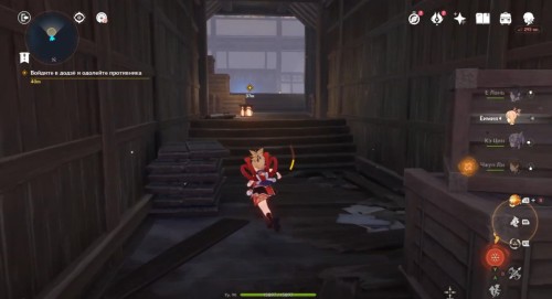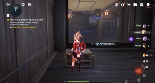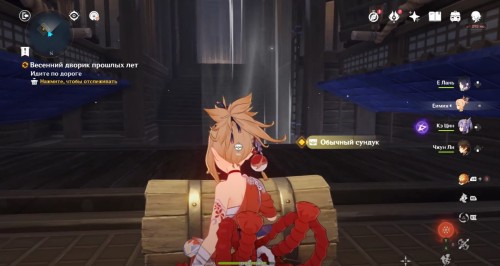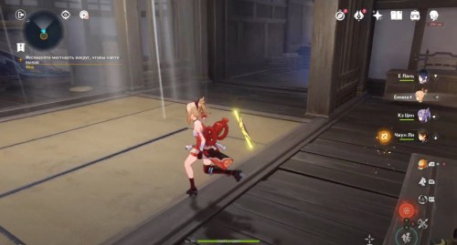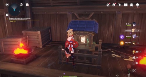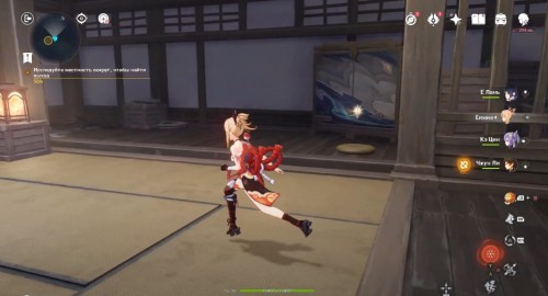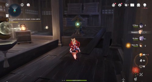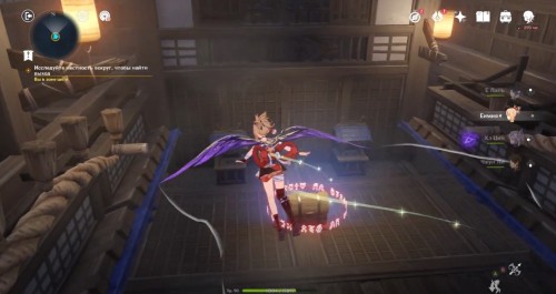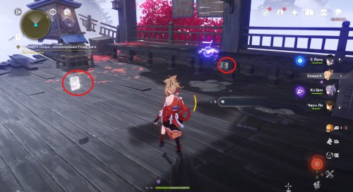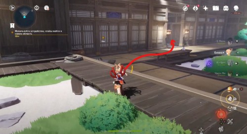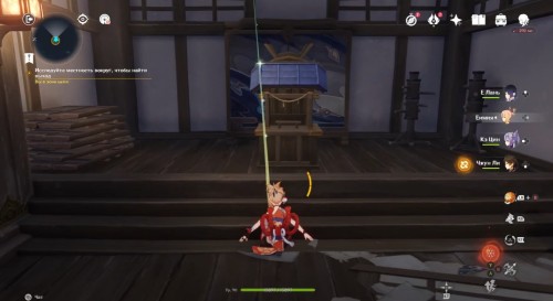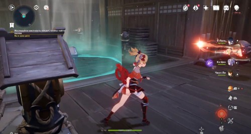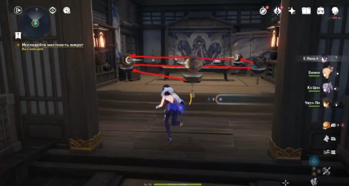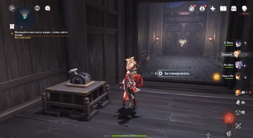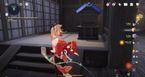 По дороге наверх за ширмой можно, кстати, обнаружить еще один сундук. Активировав все святилища, вы сможете пройти в новую комнату, где обнаружите Кадзуху. Посмотрите продолжительный ролик.