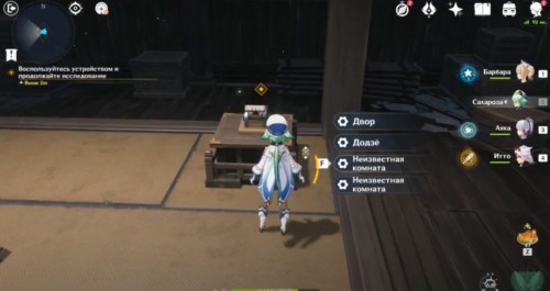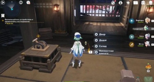 Взаимодействуйте с рычагом, на который указывает маркер, и выберите опцию «Неизвестная комната». Перегородка за вами закроется, а затем снова отворится, но за ней уже будет коридор и сундук с желтой печатью.
