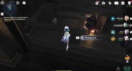 Возвратитесь назад в сад, а затем пройдите в проход справа. Там вы обнаружите разблокированный рычаг. Взаимодействуйте с ним для переворачивания комнаты. Затем спрыгните вниз.