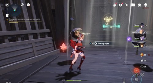 Для снятия барьера пройдите в правое боковое помещение (если встать лицом к сундуку) и поверните отражатель таким образом, чтобы он смотрел в сторону центральной комнаты.