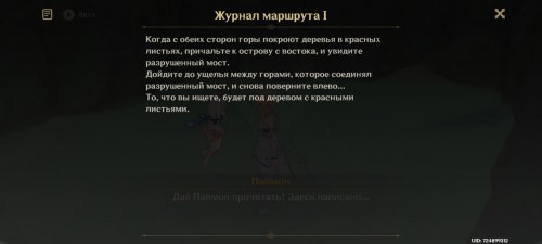 На этом квест закончится, и в вашем меню заданий появится серия квестов «В поисках сокровищ четырех рифов». За выполнение задания вы получите следующее вознаграждение: 30 примогемов, 2 книги опыта героя, 200 очков приключений и 20 тысяч моры.