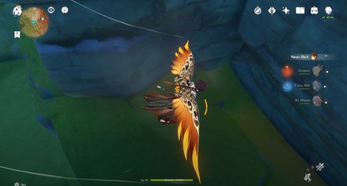 Доберитесь до края обрыва, показанного на скриншотах ниже, а затем спрыгните с него и сразу же разверните камеру. Вы увидите проход в пещеру – залетите туда. Там вы обнаружите гигантского яка, который будет просто лежать на земле. Он будет атаковать вас с разбега, однако от его рывков легко уклониться.