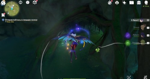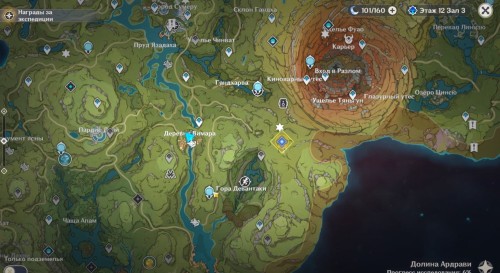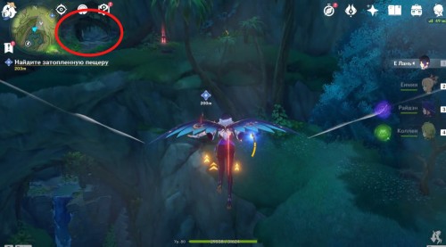 Проход в пещеру расположен в северной части локации гора Девантаки. Если у вас еще не открыт ближайший телепорт, то переместитесь к статуе семи архонтов на юге, а потом летите в сторону маркера. Вскоре вы увидите на выступе телепортационную точку и вход в подземную область.