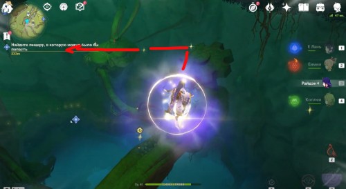 Далее вам необходимо отыскать пещеру, в которую необходимо попасть – она расположена на противоположной стороне этой подземной области. Как обычно, начните использовать четырехлистные символы, чтобы быстро перелетать с одного островка на другой. Вскоре вы увидите светящийся указатель внизу.